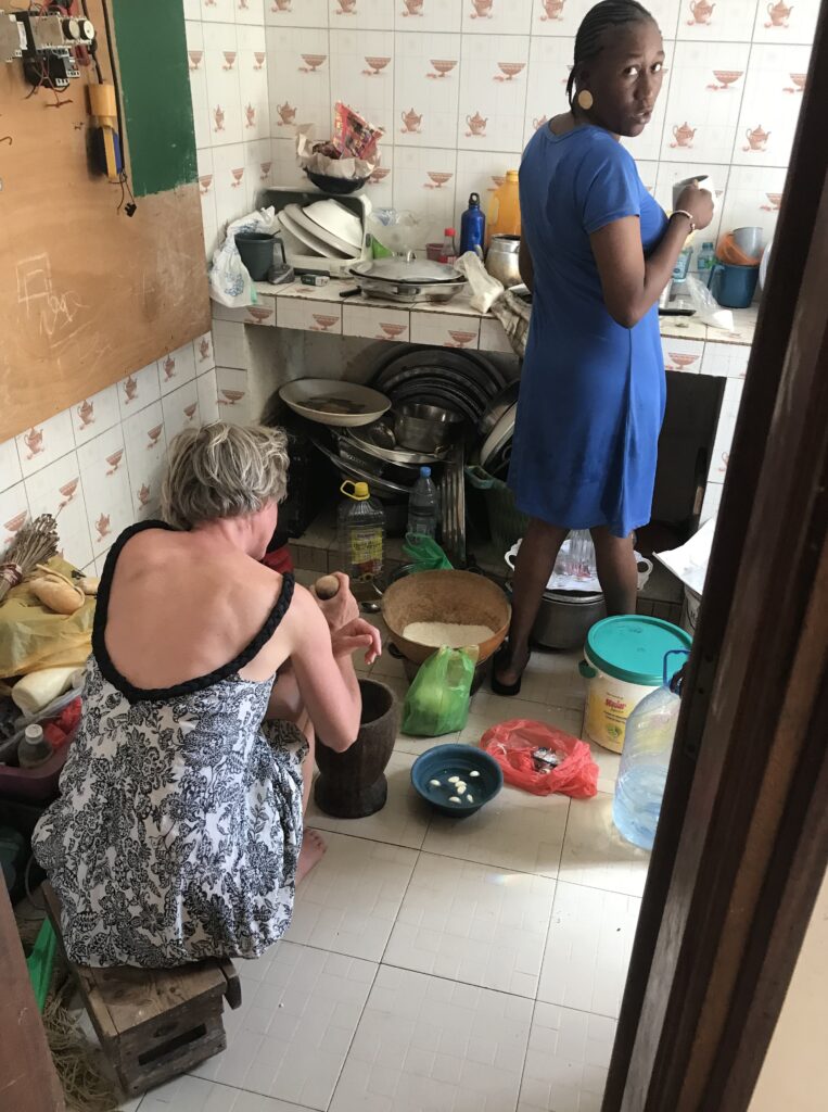 Na een paar weken vertrok Djibil voor zijn werk naar Casamance in het zuiden van het land en werden we een vrouwenhuishouden. Tya, haar zusje Fatmata, diens vriendin Fatou, die er veel was, de dochters Maryama (7) en Anta (4), mijn petekind. De badkamerdeur ging niet meer op slot, de maaltijden werden onregelmatiger en de sfeer steeds losser. Bijdragen aan de kosten was nog steeds taboe maar watermeloen en ander fruit mee naar huis nemen kon ik wel doen, kleine cadeautjes kopen ook en met de meisjes had ik vrij spel. Ik was onderdeel geworden van de familie.